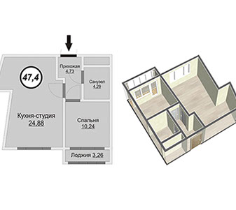 • 1-комнатные — от 40,8 до 47,4 кв.м;