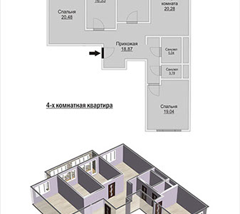 • 4-комнатные – от 128,7 кв.м;