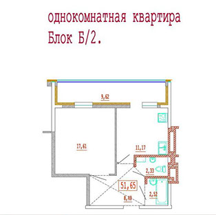 • 1-комнатные — от 34,5 до 51,2 кв. м;