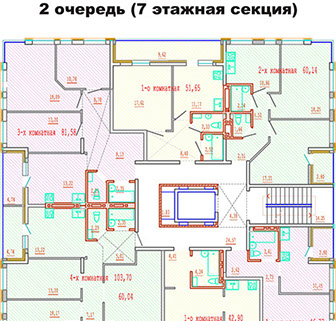 Площадь квартир: от 34,5 - 103,6 кв.м.