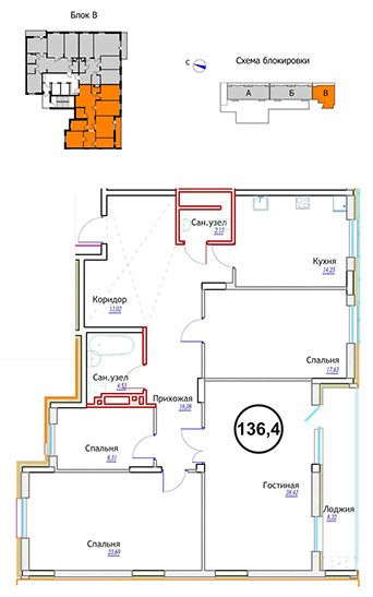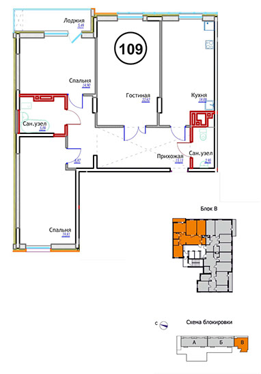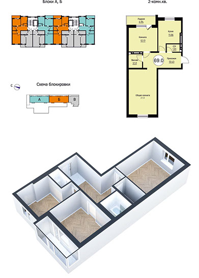 • 2-комнатные — от 67,7кв. м;