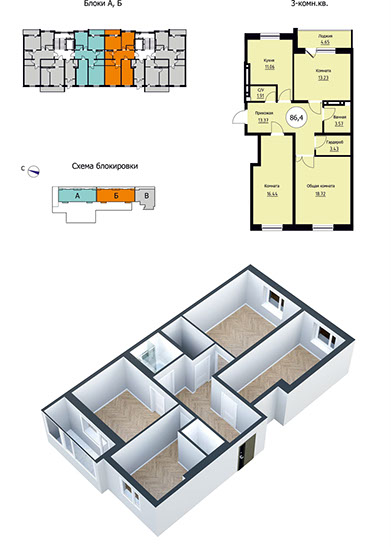 • 3-комнатные — от 90,2 до 96,3 кв. м;