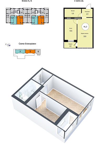 • 1-комнатные — от 35,75 кв. м;