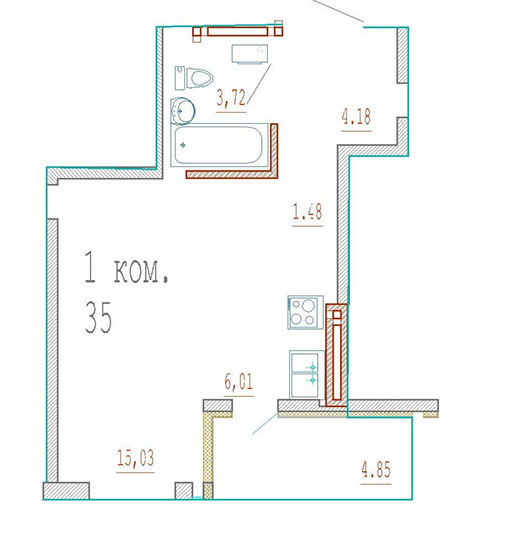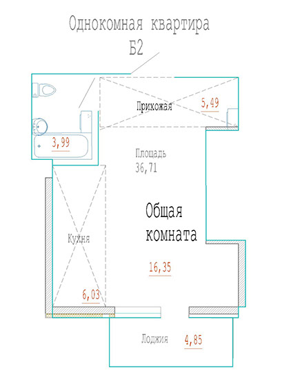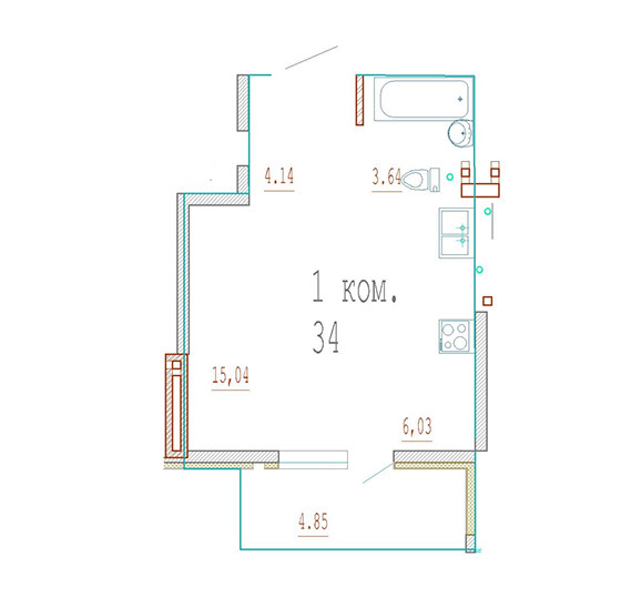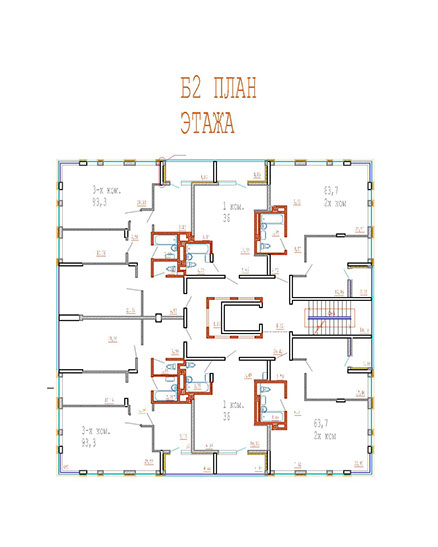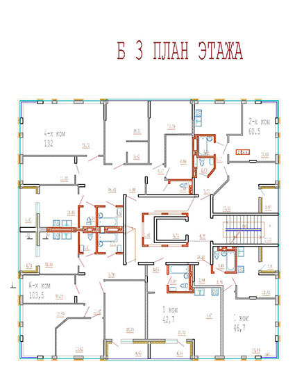 Площадь квартир: от 34,5 - 103,6 кв.м.