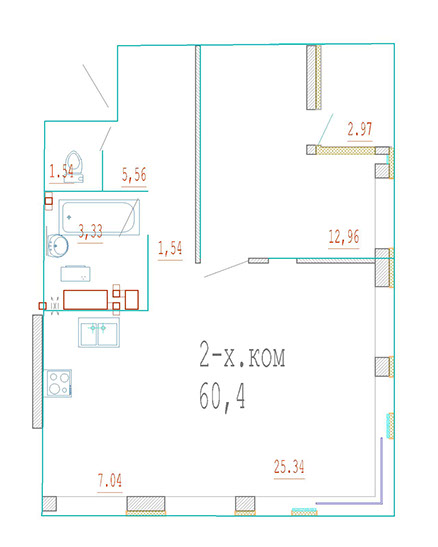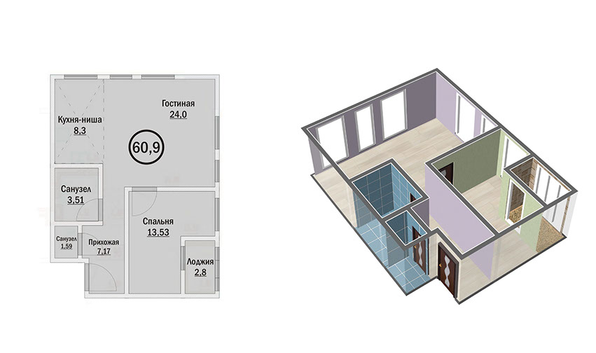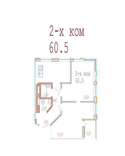 • 2-комнатные — от 60,4 до 62,04 кв. м;
